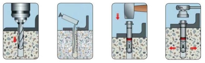 Характеристики анкера оказывают прямое влияние на специфику монтажа. Для крепежей малого диметра достаточно бытового перфоратора. Крупные производственные болты устанавливаются при помощи специальных буров.